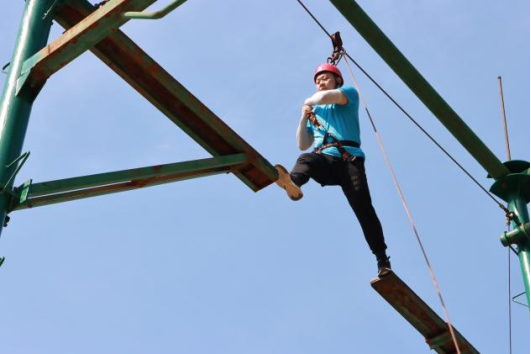 素質拓展中最具挑戰性的活動,非“信任背摔”和“高空斷橋”莫屬。6月25日上午,新員工們在教官的組織下開始了對自我的突破和挑戰。在“信任背摔”環節中,新員工們依次從1.4米的背摔臺上直身向后倒下,一雙雙有力的臂膀此時就成為了支撐自身倒下的依靠。而當大家來到“高空斷橋”的現場,8米的高臺讓很多人都產生了退縮的想法,但是伴隨著一句又一句的“加油”、“相信自己”的話語,新員工們都克服了自身的恐懼,堅實地邁出了這一步。