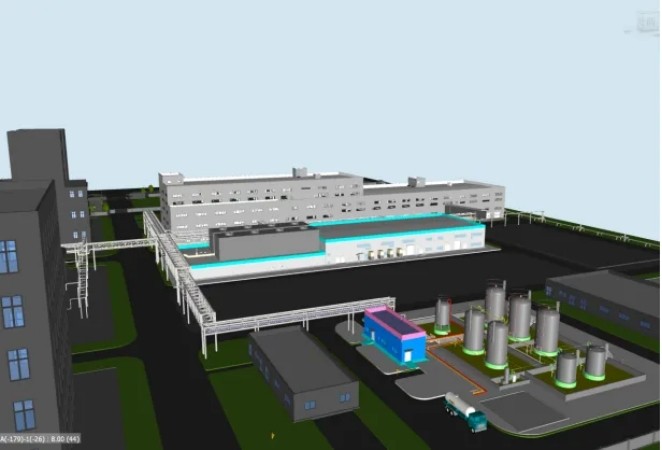 為更好地優(yōu)化管線布局,合理規(guī)劃建筑工期,天俱時結合數(shù)字化設計能力,在該項目前期對原有車間、新建車間、預留車間以及廠區(qū)管廊等設施進行了整體的BIM優(yōu)化設計,確保各車間的最優(yōu)布置和方案。同時,針對發(fā)酵車間,為保證發(fā)酵過程的無菌率以及設備閥組的整體布置合理及美觀,天俱時BIM團隊對發(fā)酵車間中的發(fā)酵罐與種子罐以及補料罐進行了合理的優(yōu)化,根據工藝要求將空氣過濾器、閥組的布置和管道的走向進行優(yōu)化,確保管道布置無死角,滿足發(fā)酵工藝要求的同時讓后期操作檢修更為方便,提升整體觀感,實現(xiàn)所見即所得。