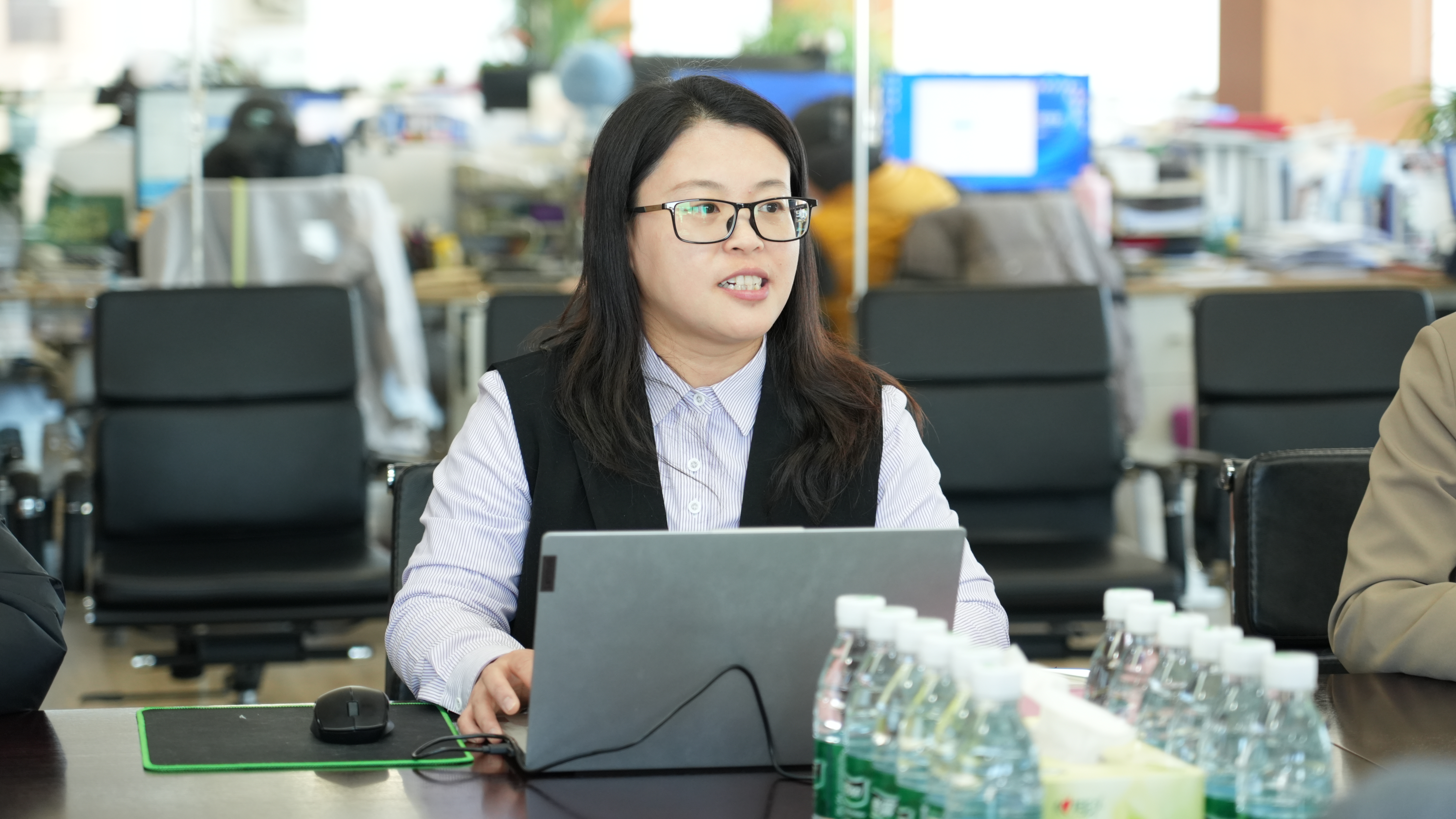 活動伊始,趙榮帶領葉磊書記一行參觀集團辦公區,講解了天俱時的業務布局和企業文化概況。在隨后的座談會上,張偉玲詳細介紹了天俱時從1998創立至今的發展歷程——從最初的“幸存者”階段,到成長為行業“挑戰者”,再到如今正逐步邁向“引領者”與“顛覆者”的宏偉愿景。隨后,她結合公司在不同發展階段的關鍵選擇與典型案例,生動闡釋了天俱時企業文化的底層邏輯。最后,她介紹了天俱時的人力資源建設和人才培養體系,重點展示了公司在人才晉升機制和職業成長路徑等方面的建設成果。