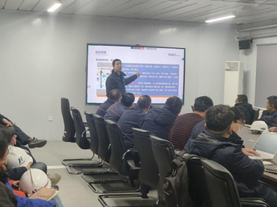 活動期間,各參建單位共同參觀了由天俱時集團建設的甘肅巨化實體質量樣板展示區(qū),并于現(xiàn)場會議室開展了專題研討。天俱時甘肅巨化項目總指揮張帥圍繞安裝階段的質量控制標準、管理措施與協(xié)同機制進行了系統(tǒng)講解與深入交流,為后續(xù)安裝工程的高質量推進做好了策劃與準備工作。